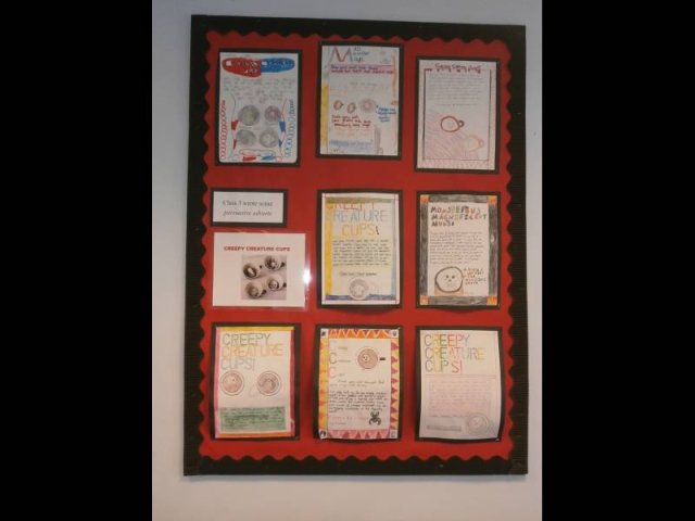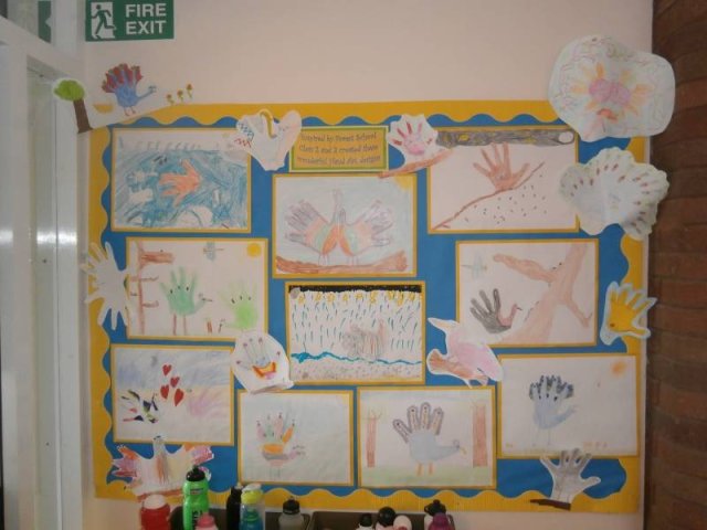 These are the displays that are currently up and around the inside of school. They show a wide range of activities and work the children have produced. Some displays are called 'Working Walls' these show what children are working on in literacy and maths.