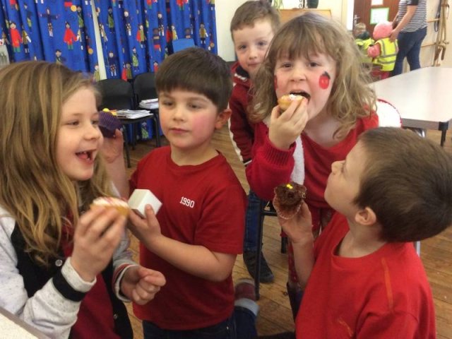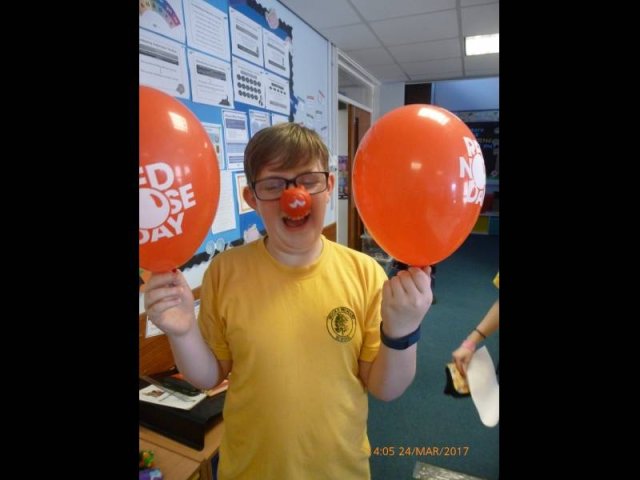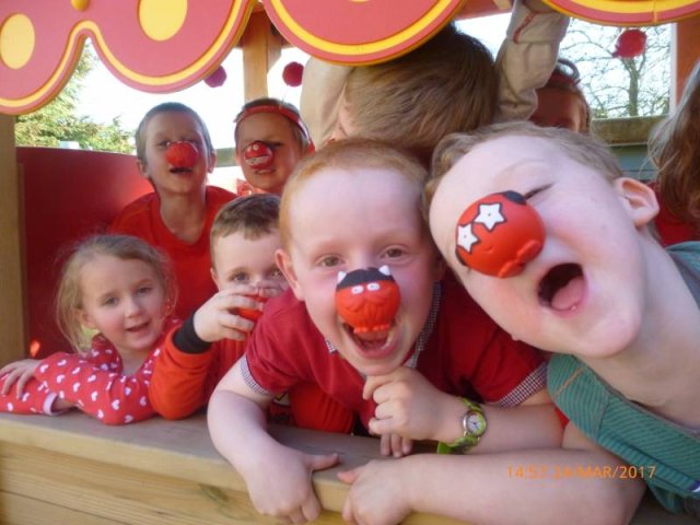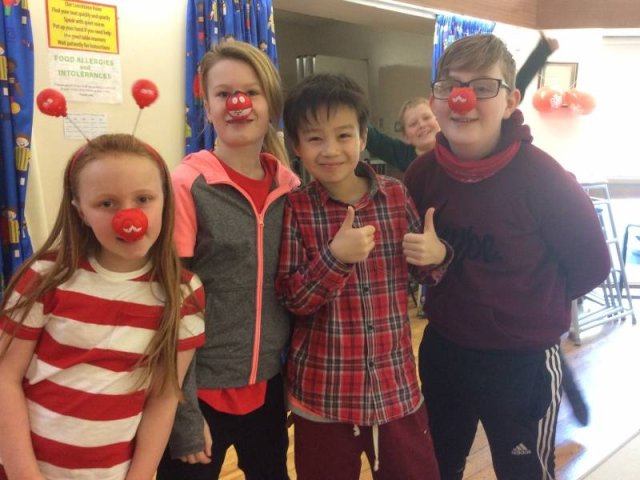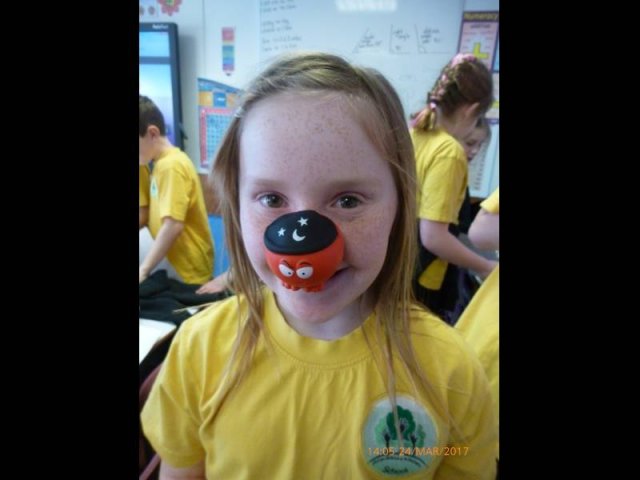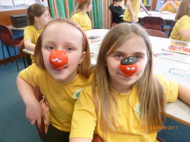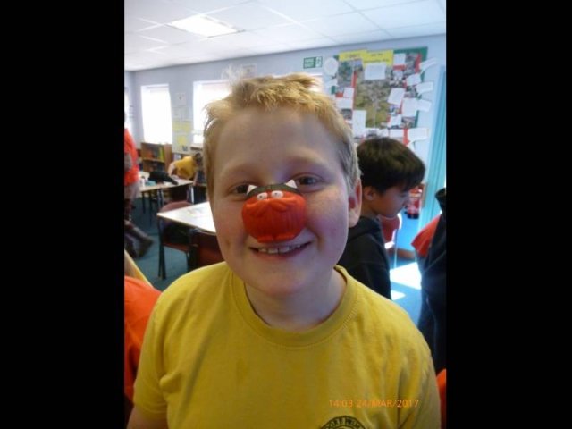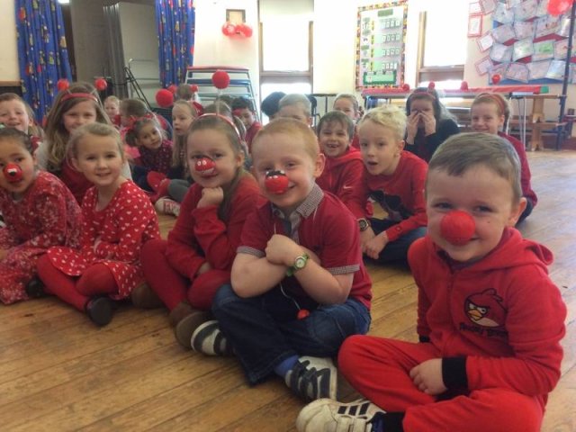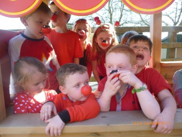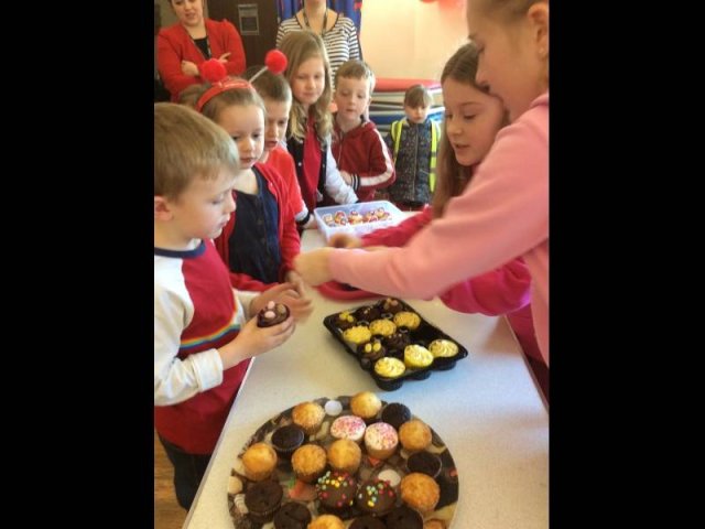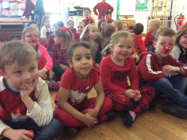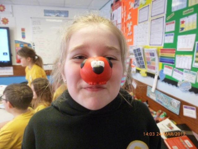 On Friday 24th March we all dressed in red and sported our Red Nose Day accessories for the day to help raise money for Red Nose Day. At break time we had a cake sale with the many donations of cakes from parents and carers. The whole day raised a grand total of £134.85-Well Done everyone!Â