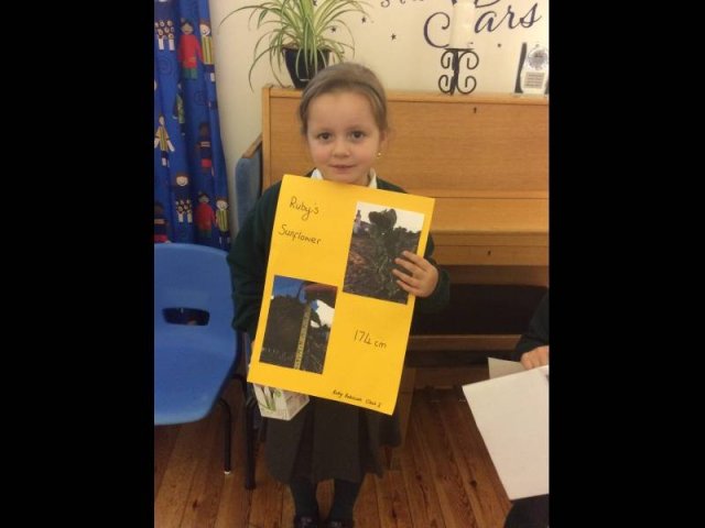 Wow, we had some amazing entries for the sunflower growing competition this year. Elsie was our winner and grew her sunflower to a total of 2.12 metres. Runners up were Grace with 1.95 metres, Jamie with 1.83 metre, Ruby with 1.74 metres and Emelia with 1.62 metres.