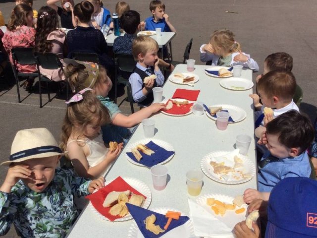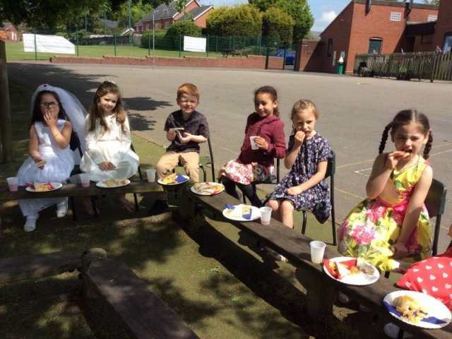 On Friday 18th May the children enjoyed celebrating the Royal Wedding in style. They came dressed as a guest, took part in royal activities and had a royal picnic lunch outside. Donations of £1.00 were brought in towards a new tree to support the Queen's European Canopy.