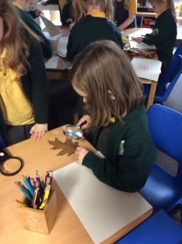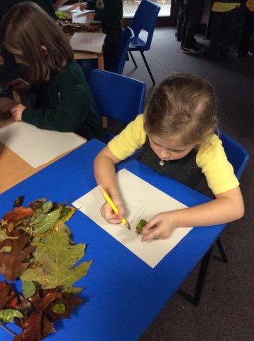 This half term the children have carried out a leaf study during their Science lessons. We collected a variety of leaves and made observational drawings, measured them and were able to I.D them. We then carried out an experiment to find out why leaves change colour in the Autumn. The children made their predicitons and then observed what happens when green leaves are soaked in rubbing alcohol over a period of 5 days. The colours that came out of the leaves were orange, brown, green and yellow. The children discovered that the colours are always there and that as the autumn arrives and we have less hours of daylight the leaves begin to die.