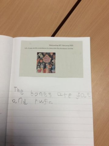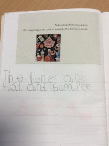 This week Class One had a special delivery from the 'Story Box!' We sang the song and the magical box opened up, inside were lots of clues, included a tray of buried bones! All of the clues linked to a museum? We then discovered our new text 'The Curious Case of the Missing Mammoth'. The children had to write sentences about the bones and about an image from the text using their success criteria for English... WOW we were so impressed! Well Done Class One!