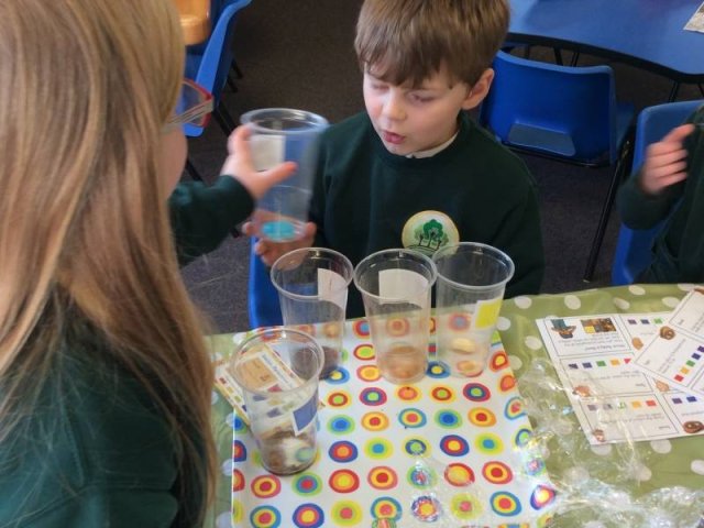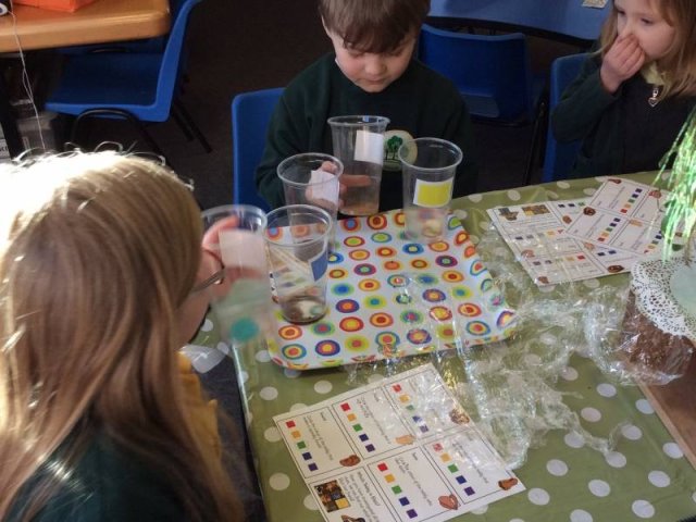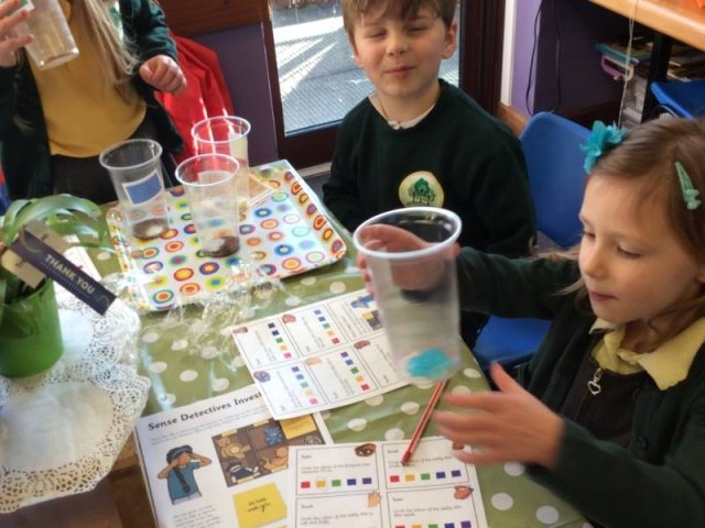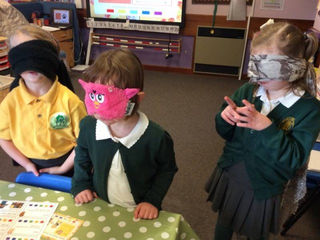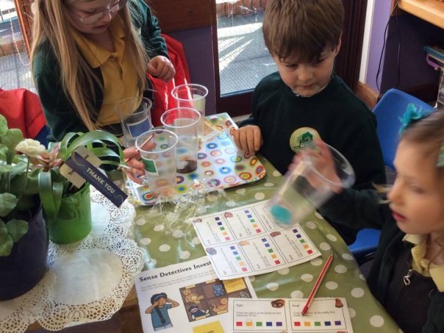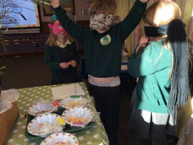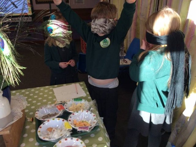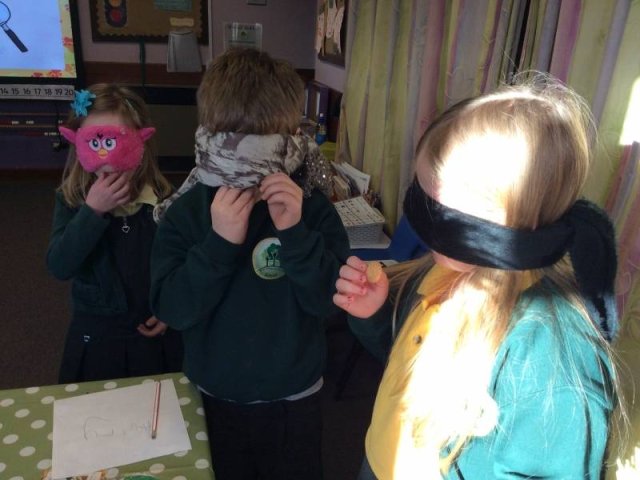 In our science lesson, class 1 used all of their senses to help to solve a problem. The children enjoyed looking closely at different objects, tasting foods, listening to different sounds, feeling different materials and exploring different smells.