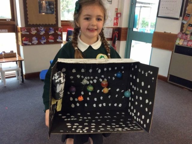 The children in class 1 have worked really hard on their space homework projects. They all look amazing, well done!