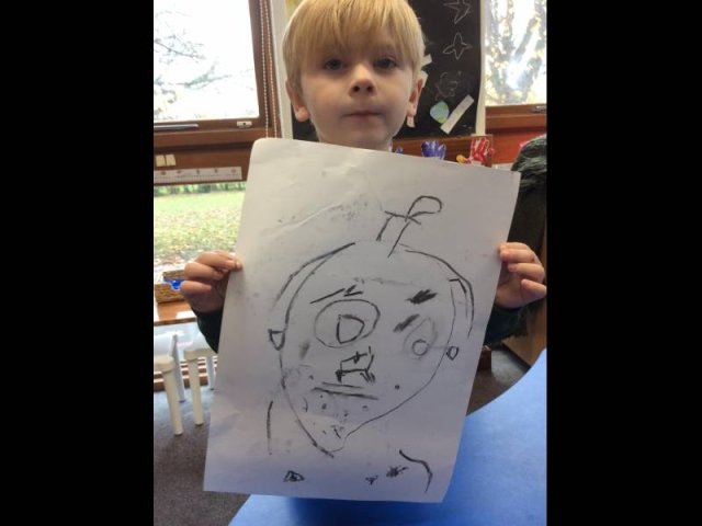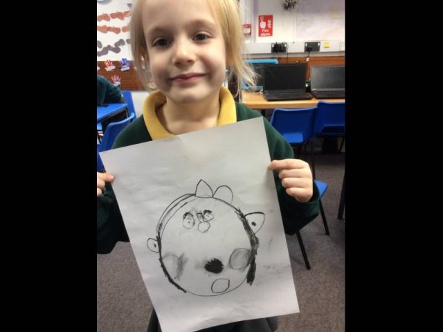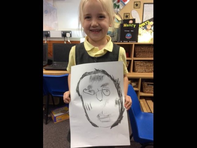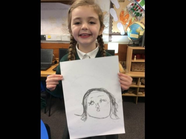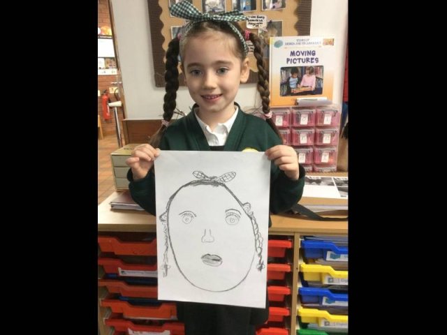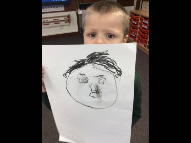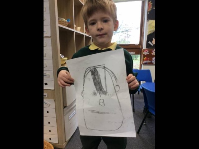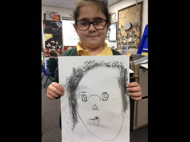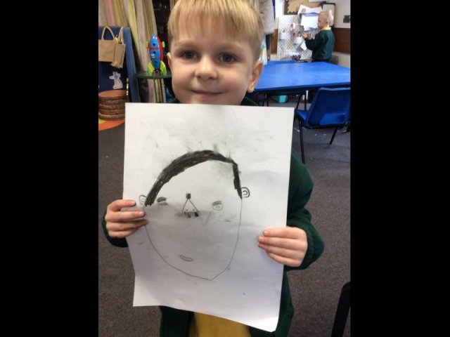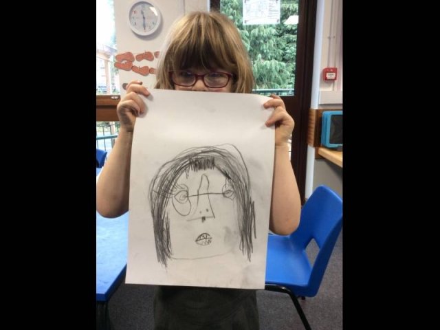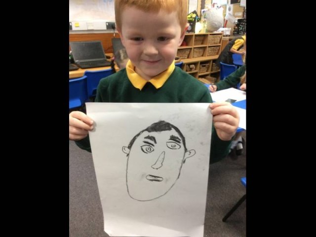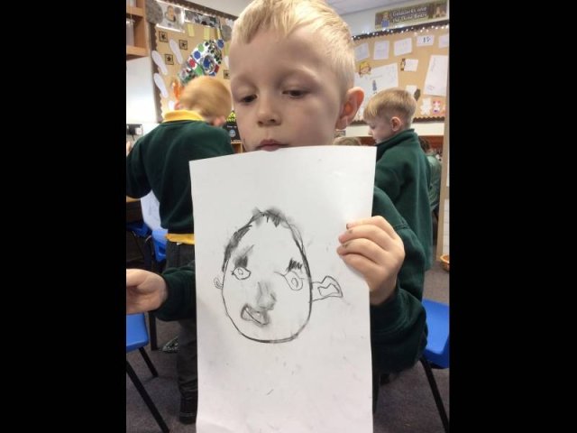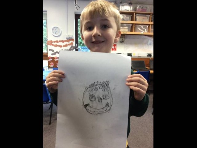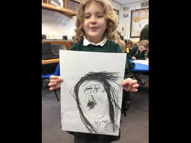 Wow-don't we look super! The children in class 1 have been using charcoal to draw their self-portrait.