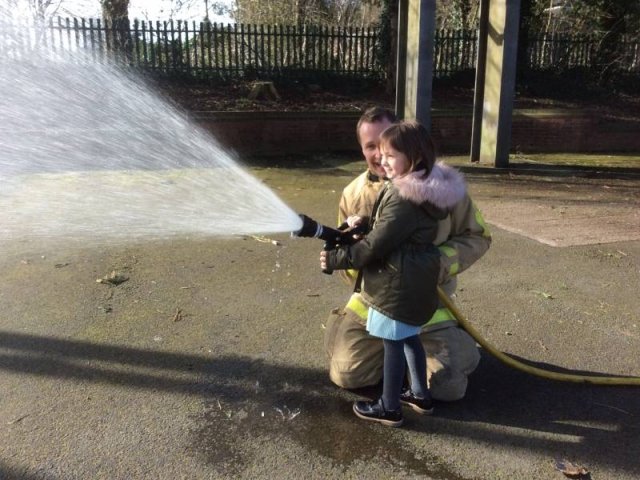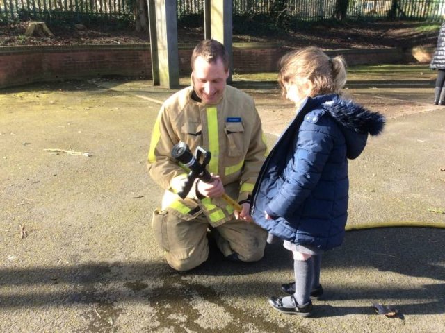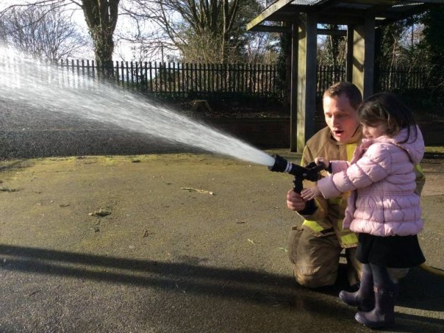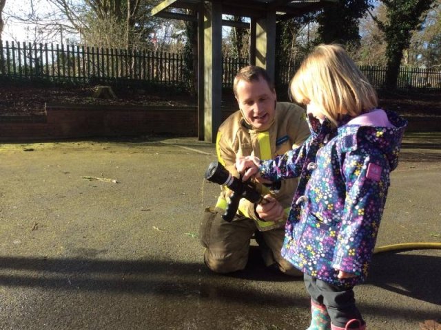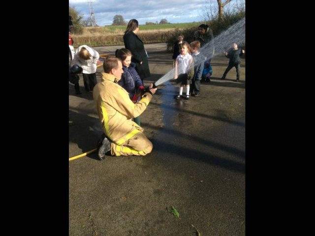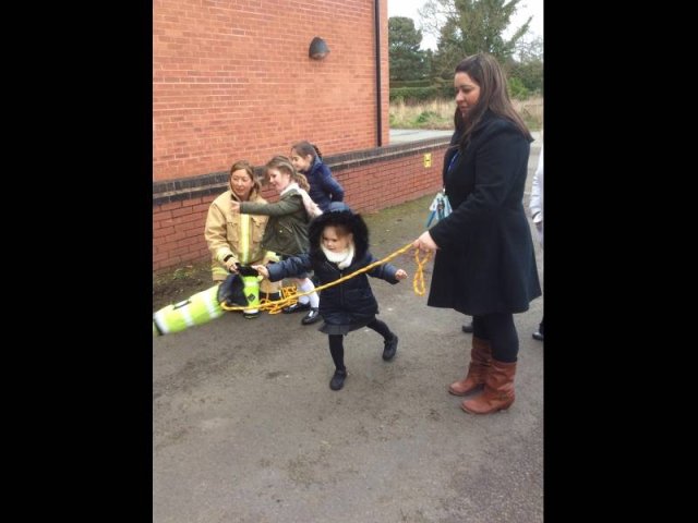 We learnt about what the fire engine does and some of the equipment that is used on the fire engine. The children had a go at throwing life saving ropes to our friends and we even had a go at squirting the water! We also watched Mrs Ward dress up in a fireman's suit.Â