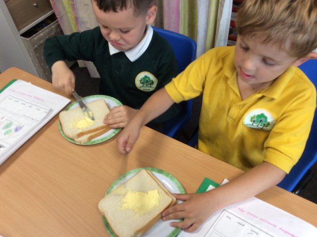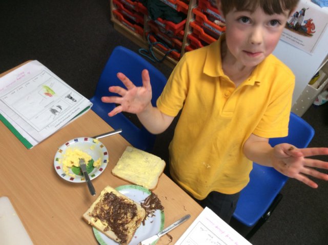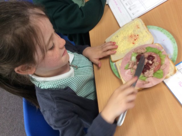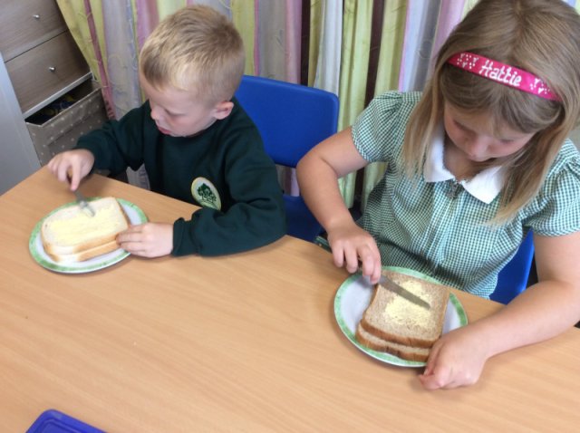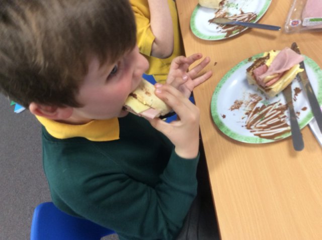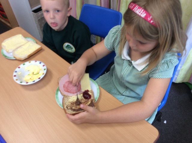 The children were really excited to make their sandwiches, some had clearly done this before at home, and some clearly not!!! Cutting the bread in half appeared to be the greatest challenge for the children!