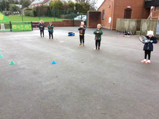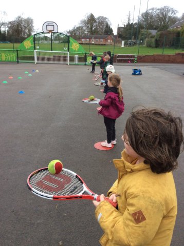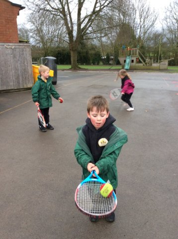 The children in Class 1 loved having Craig, 'Mr Crayon' from Shropshire tennis this week. He was a brilliant coach and the children all won a Golden Ticket to attend a Tennis day.