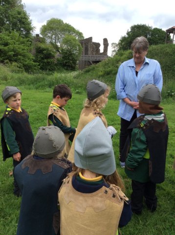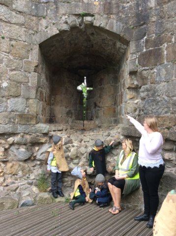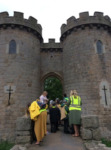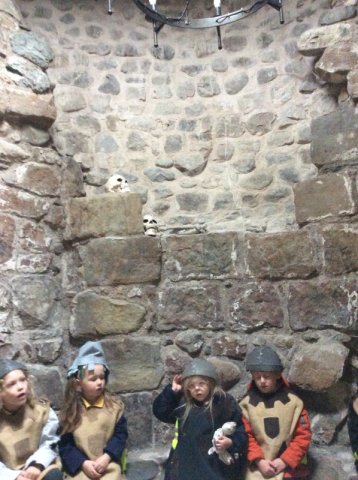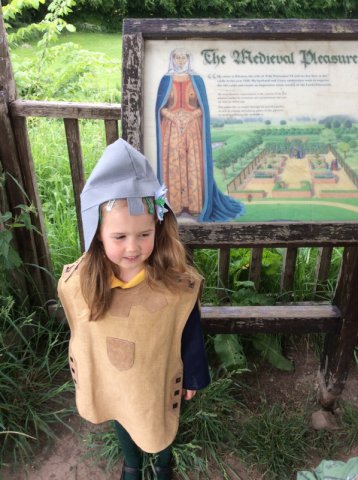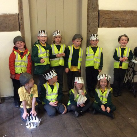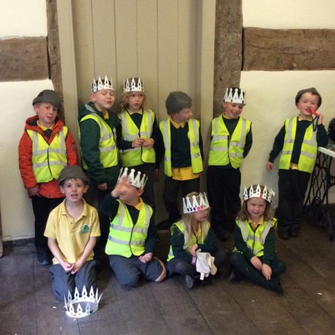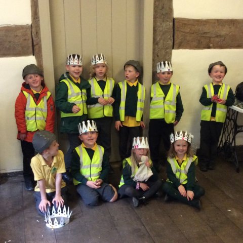 All this term the children in Class 1 are learning about Castles, Queens and Kings. This week we went on our trip to Whittington Castle and a fantastic day was had by all. The whole Class got to dress up as Squires (Knights in training) as we toured the castle and grounds with our lovely guides. We learned all about Lady Eleanor and how Thomas Telford had taken stone from the castle wall to build roads. The children got to cross the drawbridge and head into the dungeon. We returned to our tower classroom, where children got to take part in a Mediaeval life workshop, we learned about the use of herbs and got to inspect some Medieval Groats. After that children completed their Daily mile by doing 3 laps of Lady Eleanor's Garden then back to the tower for crown making. Before we headed home, we could not resist getting locked in the stocks.