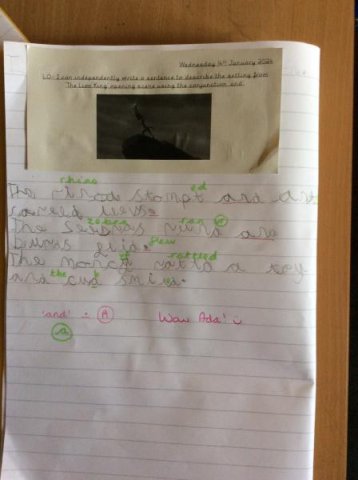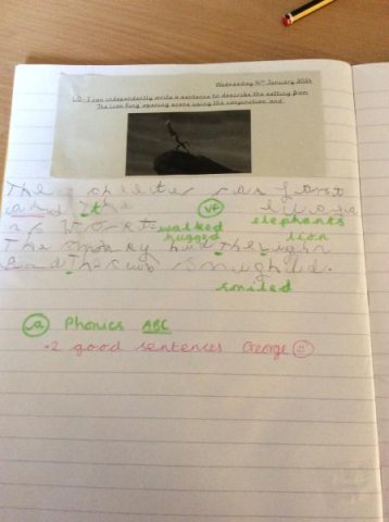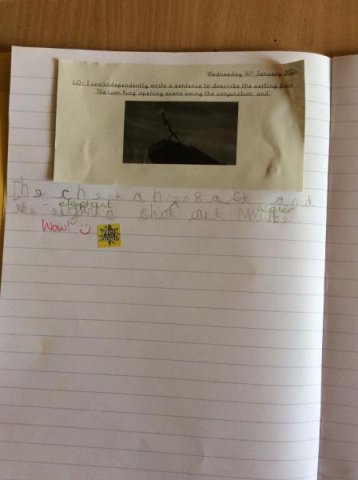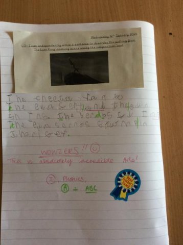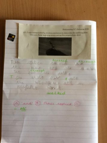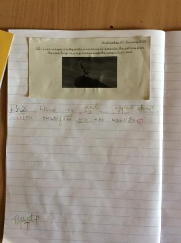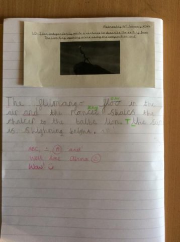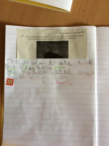 We watched the opening scene from the film 'The Lion King' and the children has to write down what they could see in the scene. The Year One's then wrote sentences using the conjunction 'and' plus remember their success criteria for writing! One child even received a special Headteacher award sticker!