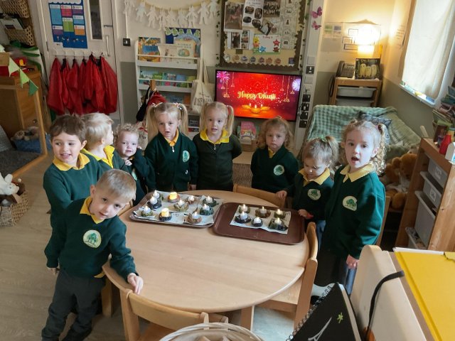 🪔🎆Over the past couple of weeks the nursery children have been learning all about Diwali. They showed off their creative skills by making their very own diva lamps out of clay and decorated them beautifully with coloured paints and tea lights! They also listened to stories about Rama and Sita and made their own Rangoli patterns. Well done nursery! Happy Diwali Everyone! 🪔 🎆