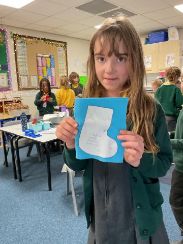 We are feeling very Christmassy at the moment, making a stocking in Design Technology. We have tried hard to cut our felt accurately, choose complementary colours and practise running stitch.