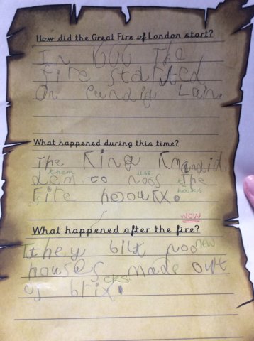 This week Class One have been learning all about The Great Fire of London. The children have created their own houses to burn on the fire. We discussed flammable materials and the importance of fire safety. We have been practising the song 'London's Burning' as a class. The children have also wrote a recount of what happened during this time and the reception children have been writing with feathered quills. During our Art lesson we worked together to create a collage scene of the fire of London. The Year One children also used the computer programme 'Paint' to make pictures. Well Done Class One what a fabulous first week back!