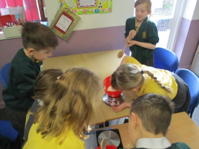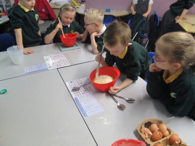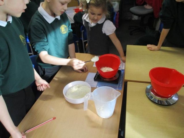 We linked this to our Maths where we had to weigh the ingredients, create a tally and bar charts to show our favourite topping and in English we wrote instructions on how to make our pancakes.