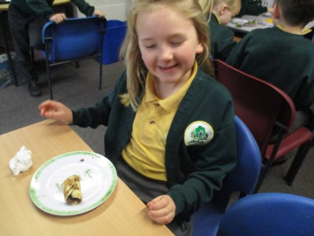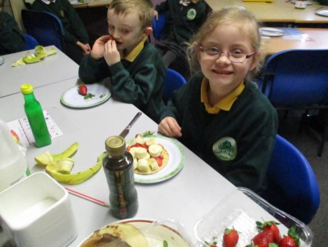 We have a lot of fun making and tasting our pancakes on Pancake Day!