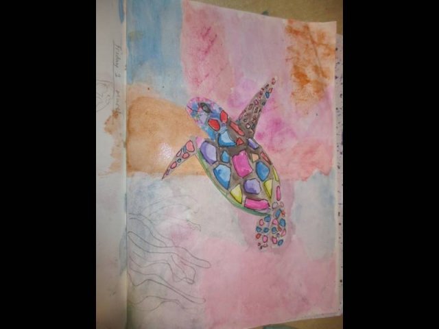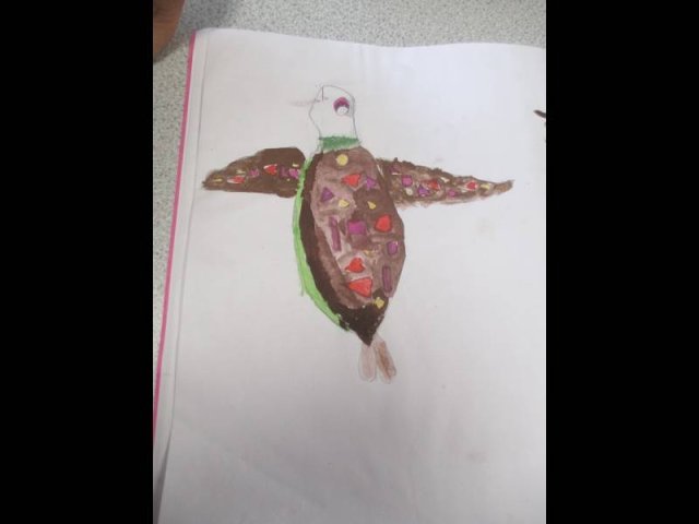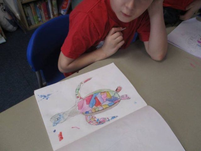 The turtles took a lot of concentration. We have worked on shape, size and proportion and then worked hard to carefully give our turtles lots of bright colours.