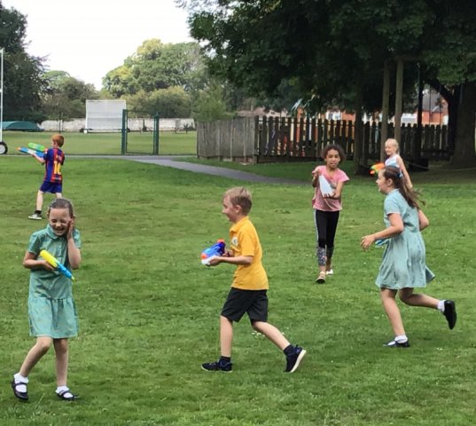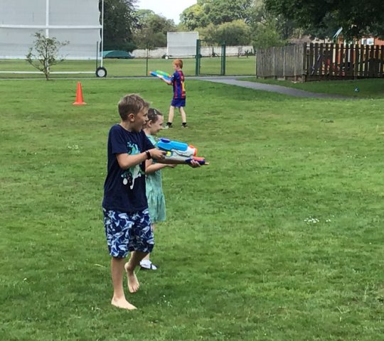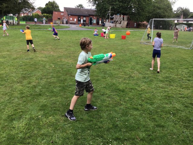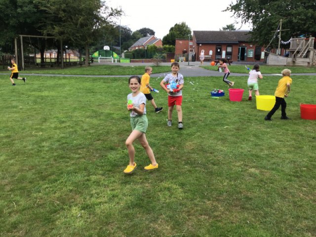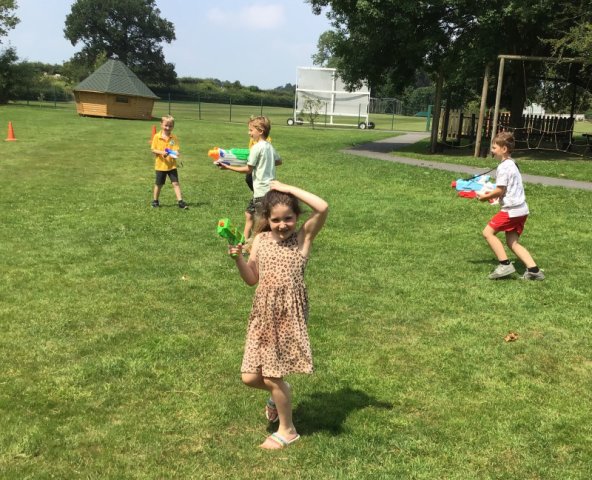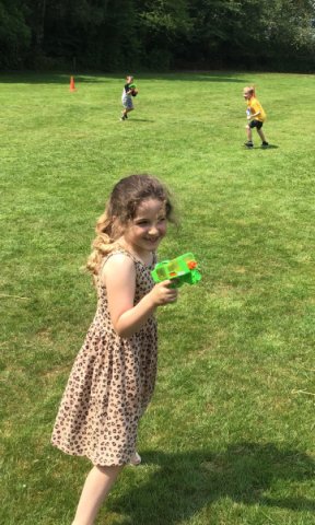 Class 2 had a soggy but fun end to the term today as we had a HUGE water fight out on the school field. Everyone had a wonderful time and despite the warm sunshine many of us were still dripping wet come home time! It was a great way to end a challenging year!