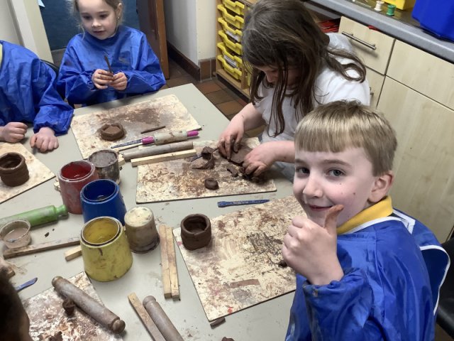 We have been working on some 3D art this term, using clay to make some Roman-inspred coil pots. We went through a variety of stages through research, practice, planning and making to create some really special pieces of work. The children were very proud of their work. Â