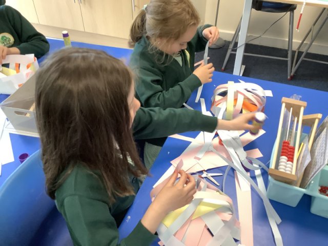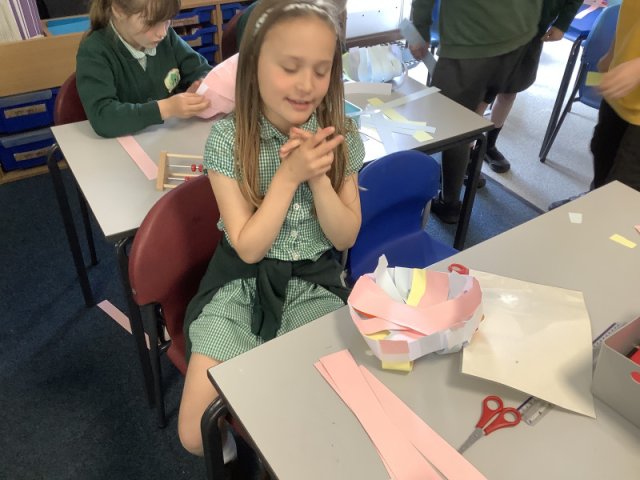 Class 2 have been looking at how artists have been inspired by nature and in particular birds and nests. Having studied some examples and see how the experts do it (!) we had a go at building nests from a variety of materials. The children knew that their nests needed to be quite a solid structure for them to add details and decorations. We built nests in Forest Schoolm using natural materials and in class using a whole range of found materials.