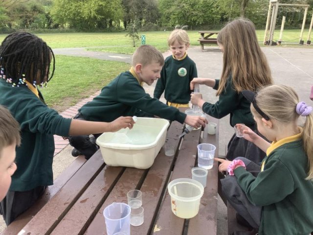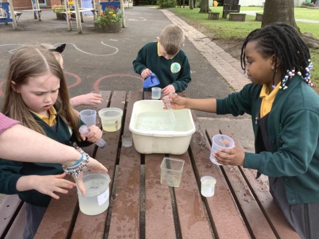 Class 2 made a splash this week in their maths lessons when they investigated volume and capacity. Through a range of containers and measuring devices, they got really stuck into the topic.