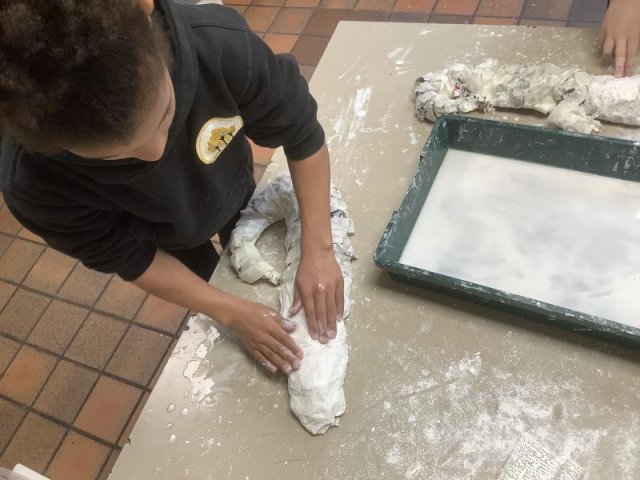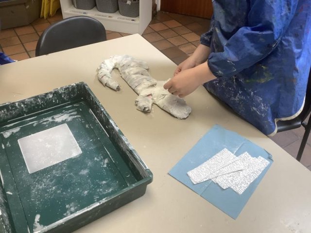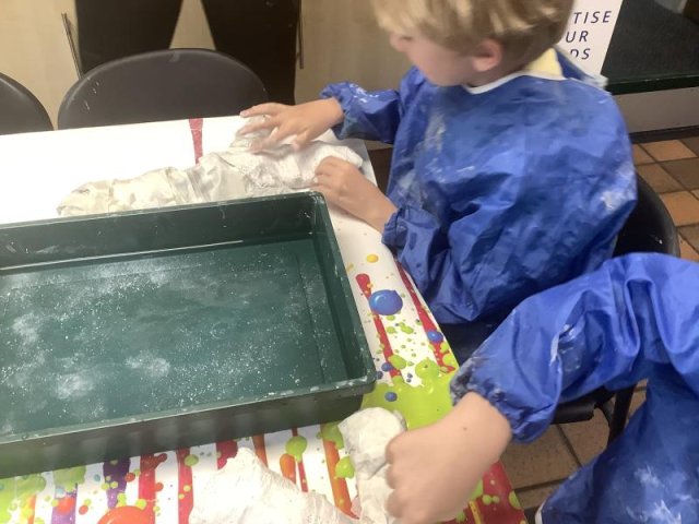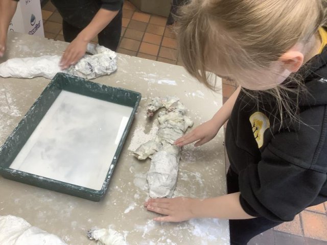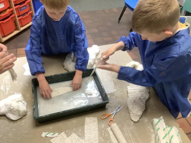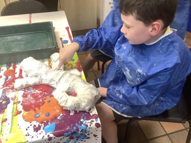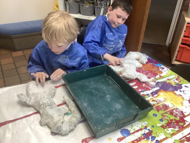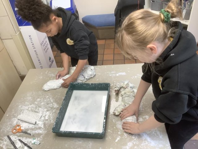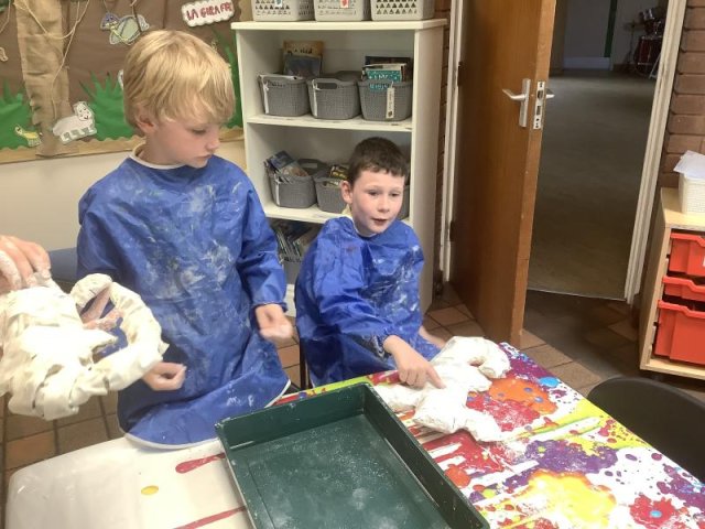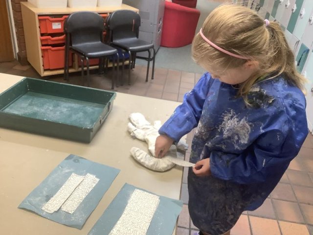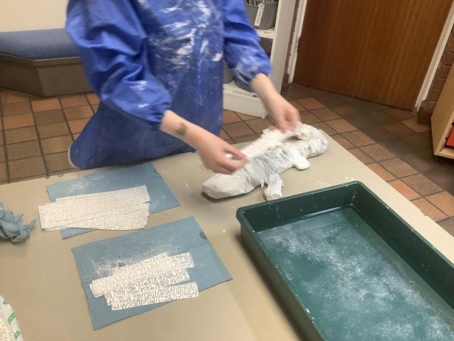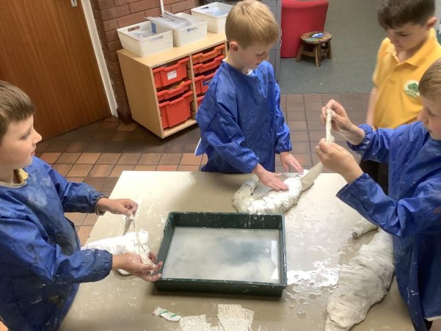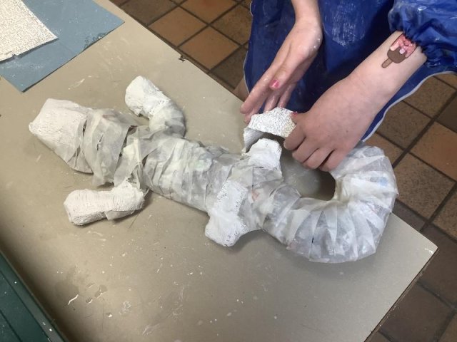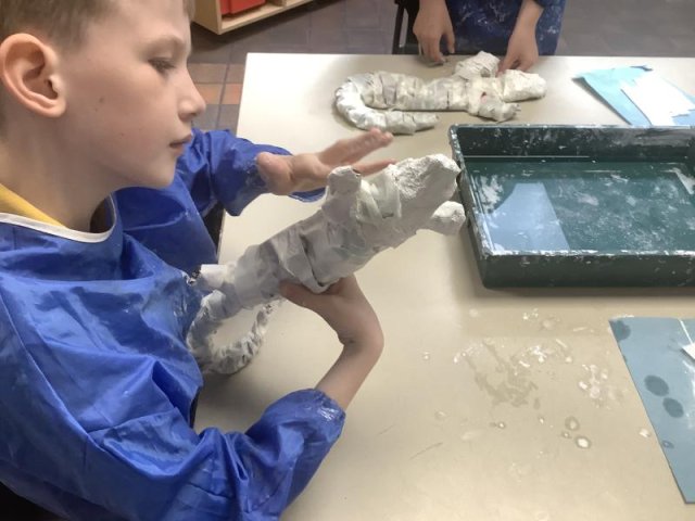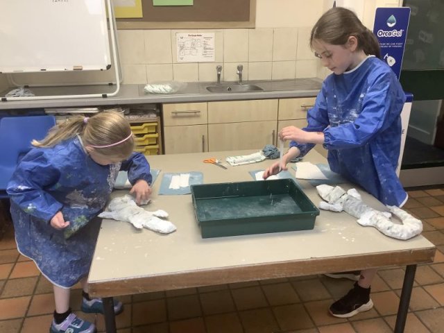 Class 2 have been very busy making their Mod-Roc crocodiles based on the story ‘The Enormous Crocodile’. It was messy work, the children soon got the hang of it and we have some lovely looking crocodiles developing. Time to paint them next so that they can really come to life! Well done children!