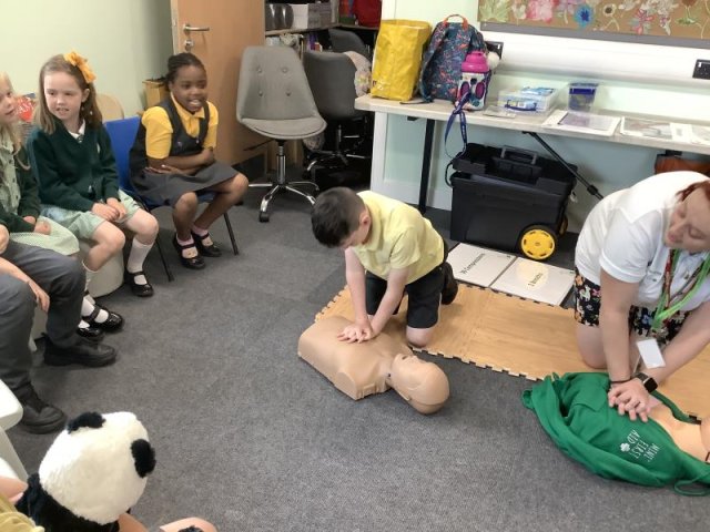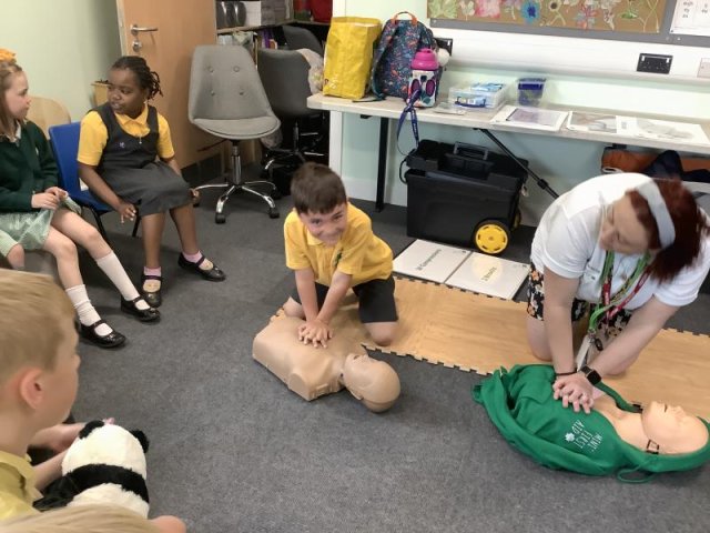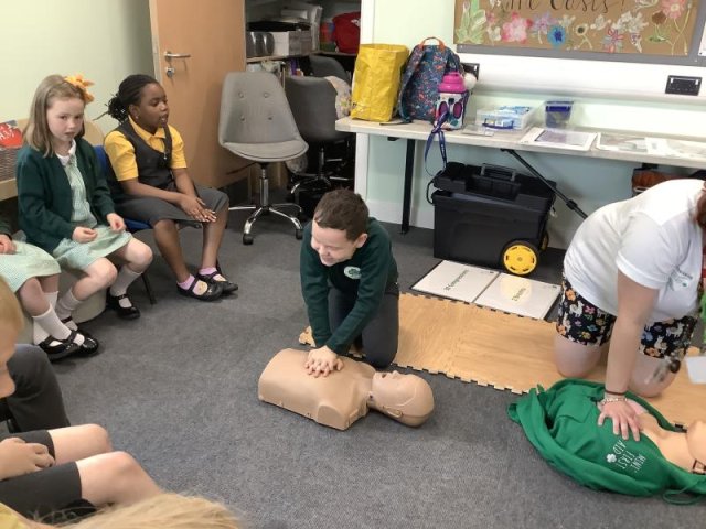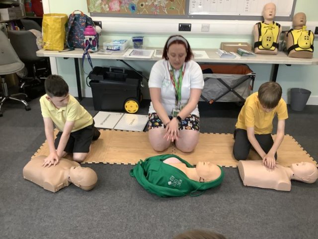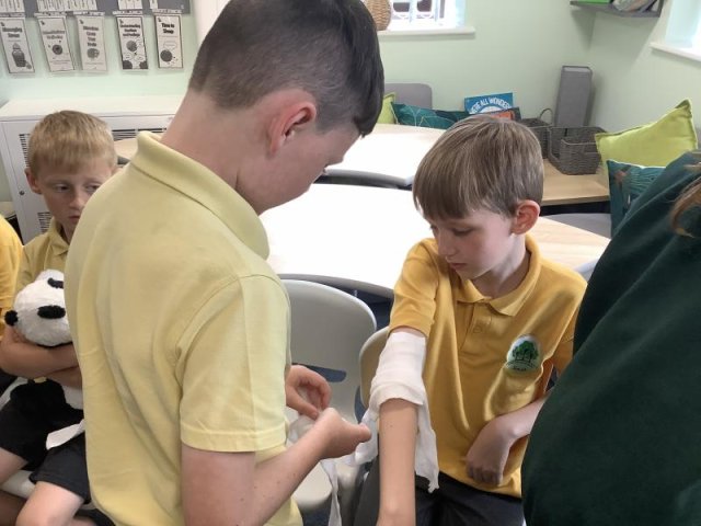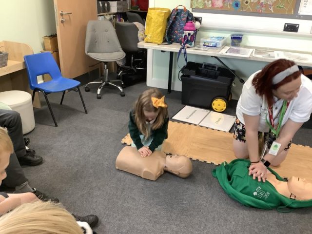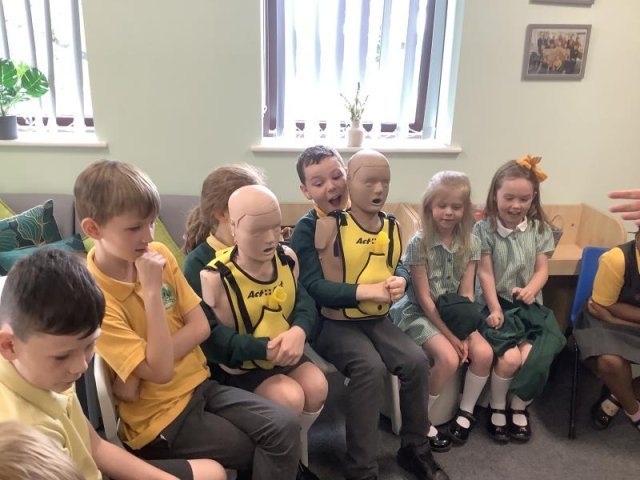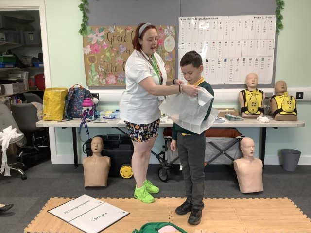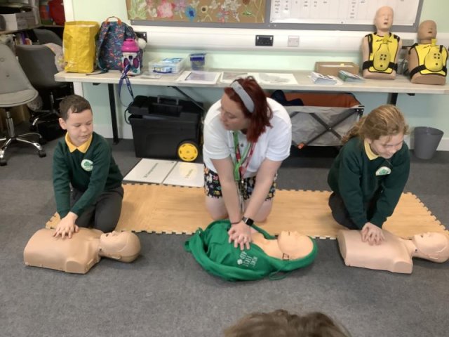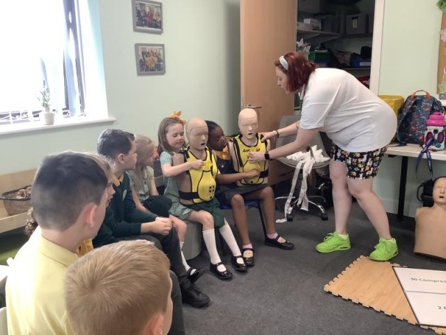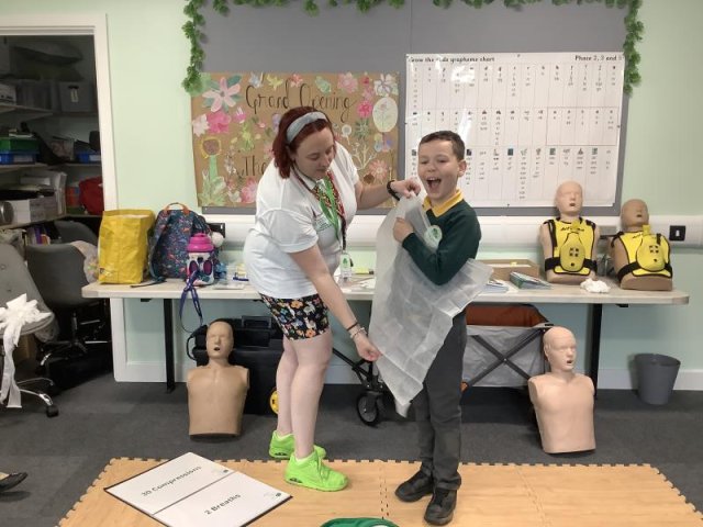Today Class 2 took part in a mini-first aid session in school. The children were so engaged and really understood how important it is to be able to carry out first aid and maybe help save a life. We learnt CPR, how to treat burns, how to help with choking and how to tie a bandage. Thank you to Kellie from Mini First-aid for sharing her time with us!