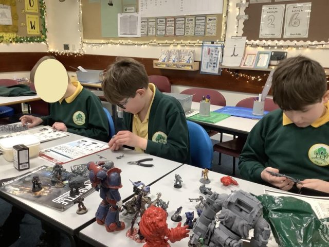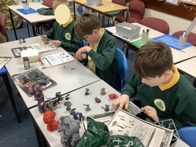 Our after school Warhammer Club is now in full flow. This week saw the boys building their 3rd and 4th miniatures ready for painting. We have 9 regular members from Year 2 to Year 6 who meet every Thursday in C2 from 3:15 for a mix of kit building, painting and gaming.