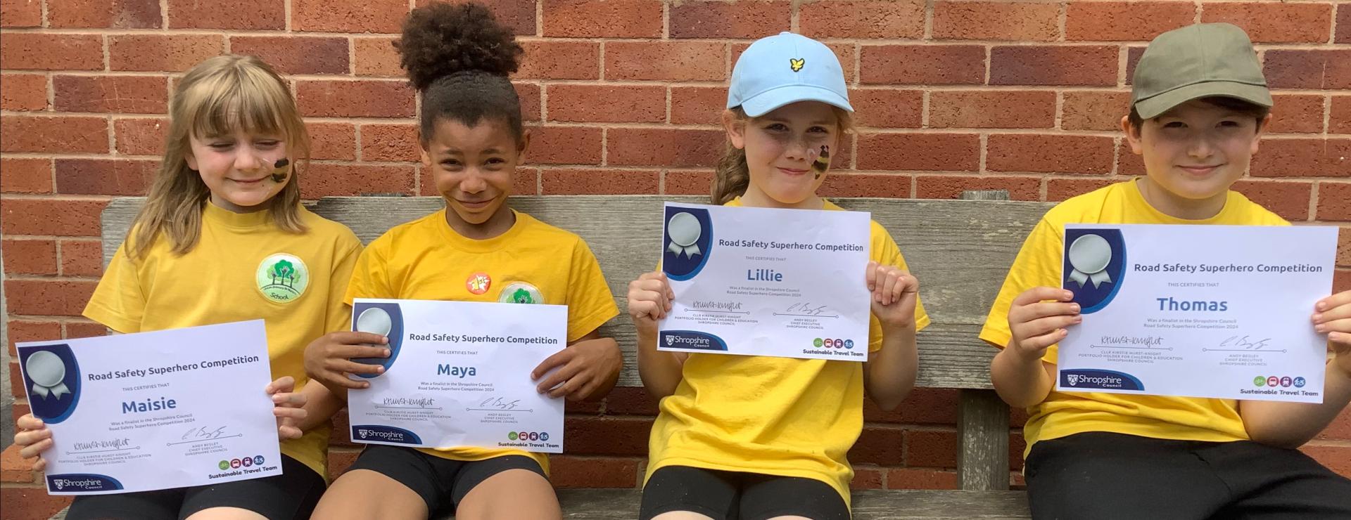Congratulations to the children who were runners up in the Shropshire Road Safety Superhero competition. There were so many entries across Shropshire and you have received a special comendation for your super art work-well done!