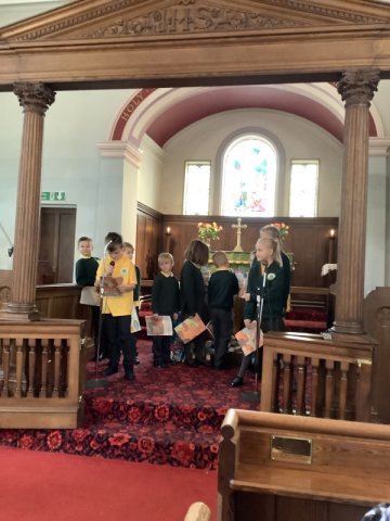 On Monday 3rd October, we held our Harvest celebration at St. Leonard's church. The children each presented their own work and/or shared some reading and prayers. Along with that we shared some of the lovely harvest songs we had been learning. Take a look at the photos!!