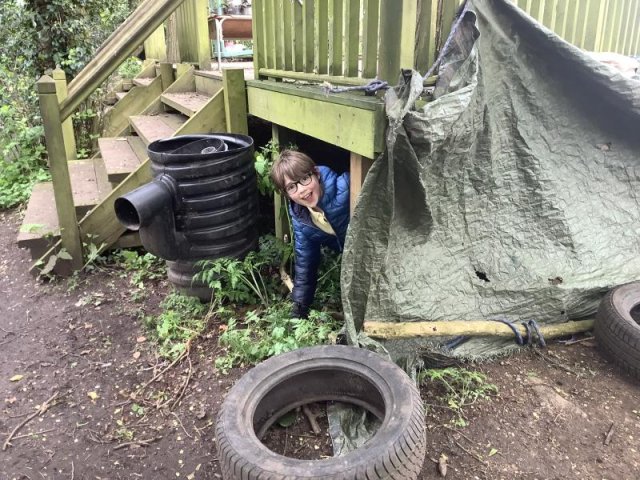 Mrs Battrick and Miss Pegg really enjoyed testing the shelters for leaks, and luckily they were all successful in keeping the whole group dry!
