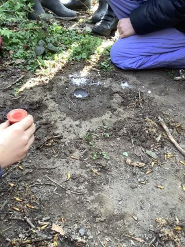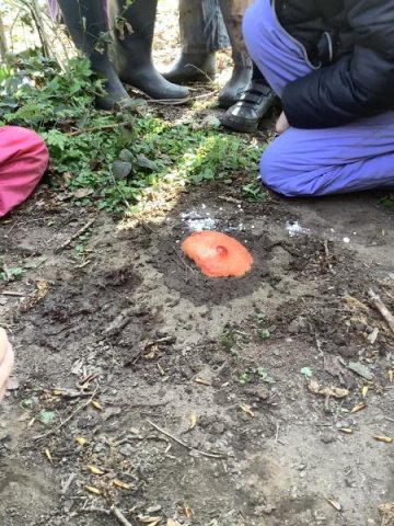 Linking with our work in Geography, we used natural materials in the forest to create our own volcanoes! We even watched them erupt with lava!