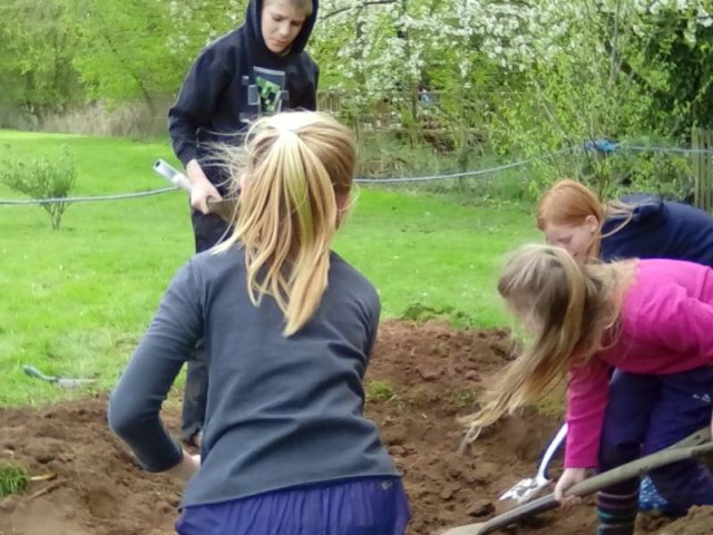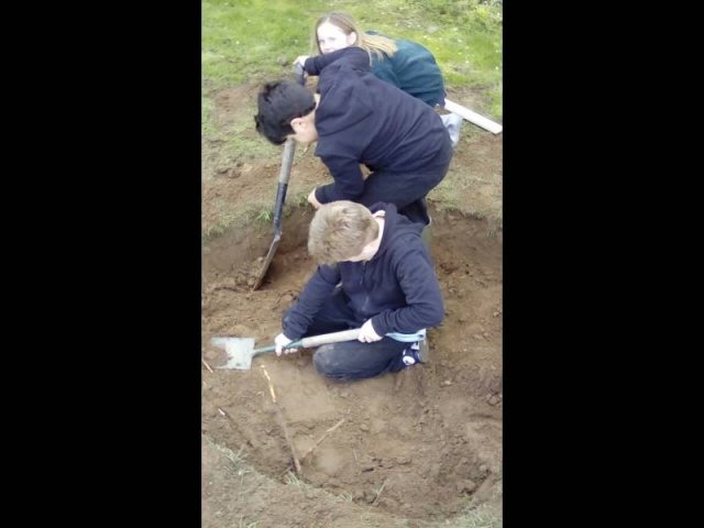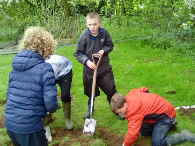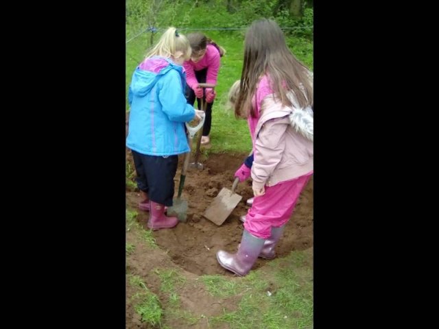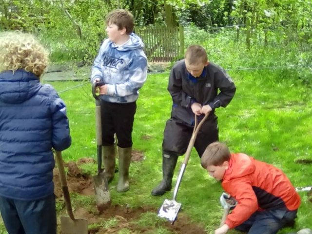 Class 3 have been studying Louis Sachar's novel, 'Holes'. So, we thought we would have a go at digging our own! In the book, the boys of Camp Green Lake, are made to dig a hole 5ft deep and 5ft across in all directions. It took 25 of us an hour just to dig 1ft down! Our excuse was that the soil in Texas must have been a lot lighter than in Woore!