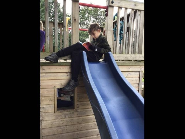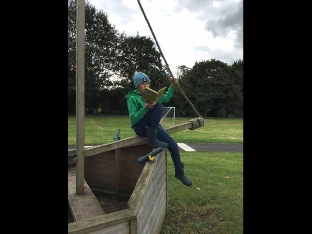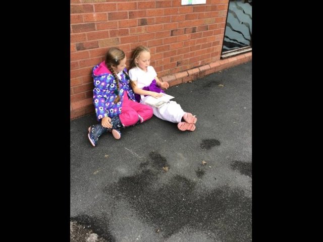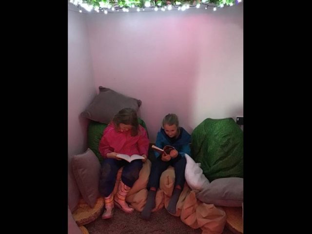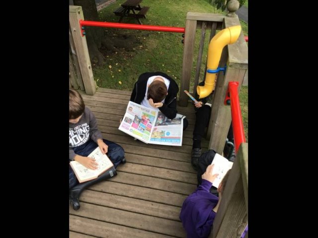 It was our first 'Read Anywhere' session this afternoon and it was a lovely time to share stories with one another in different places around the school.