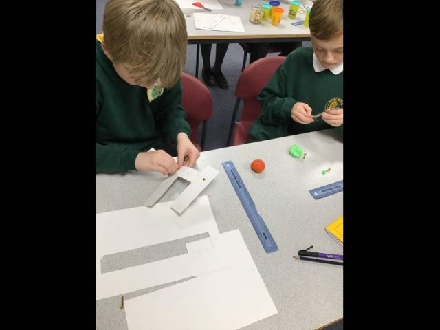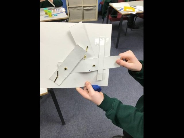 Recently, Class 3 have been exploring and experimenting making different linkages. This involved measuring and cutting different lengths and widths of card in order to make the arms for their linkages. The children then needed to pierce their card to add split pins.Â