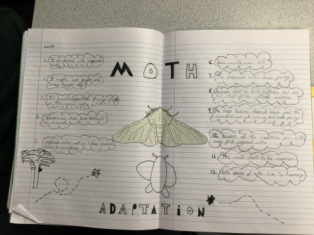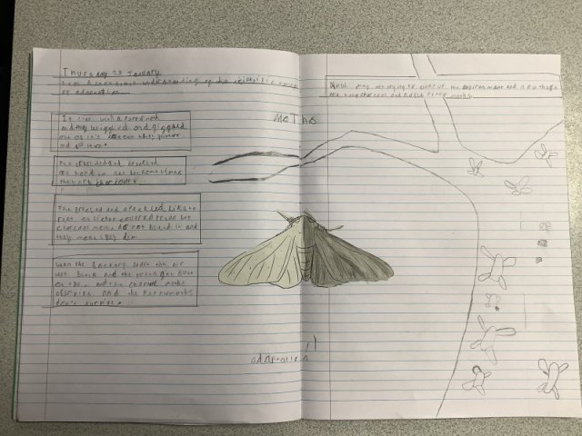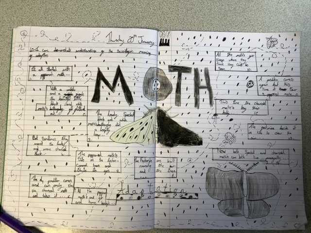 We used the text 'Moth' by Isabel Thomas, which is a beautifully illustrated explanation of how Peppered Moths adapted during the Industrial Revolution.