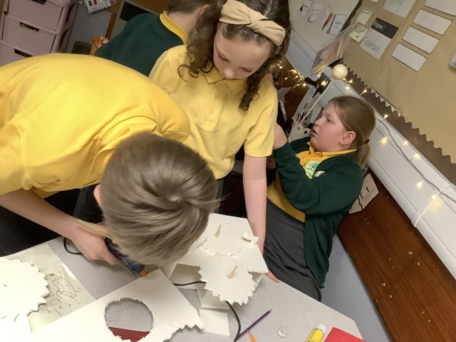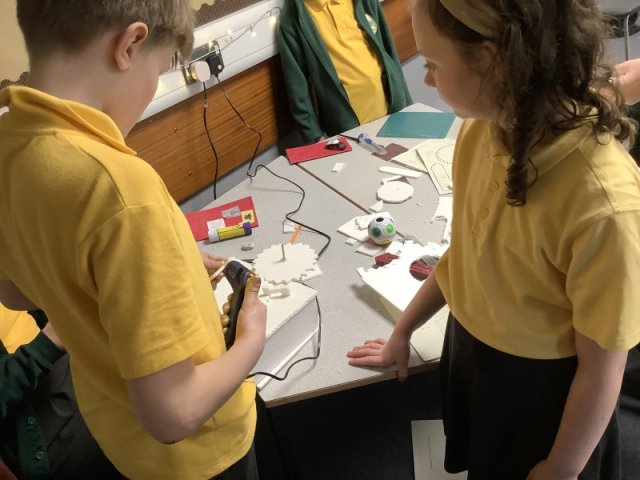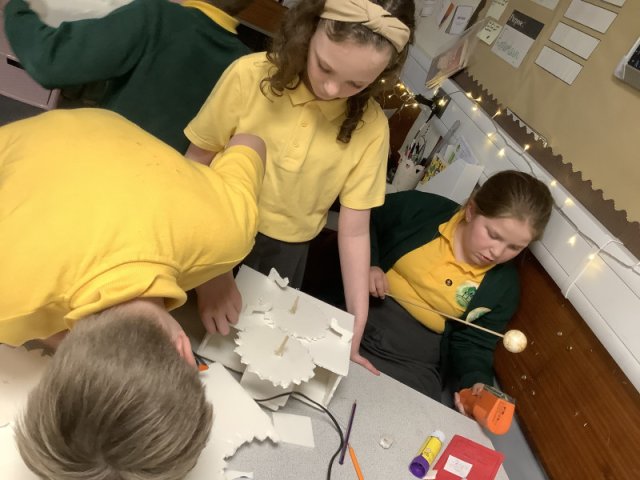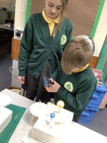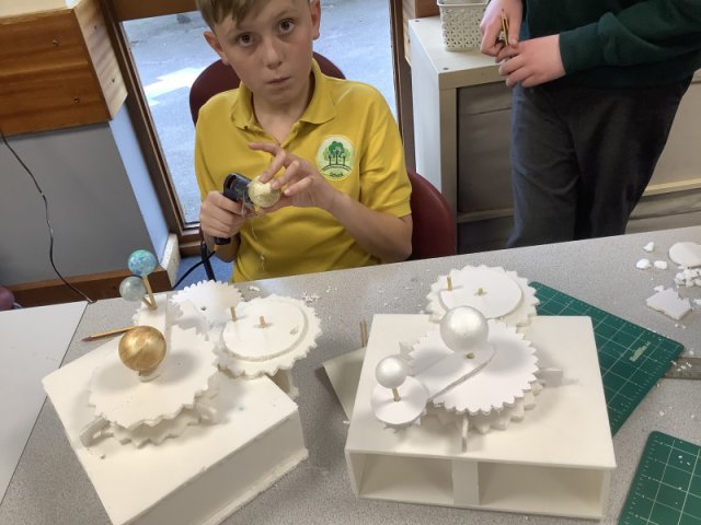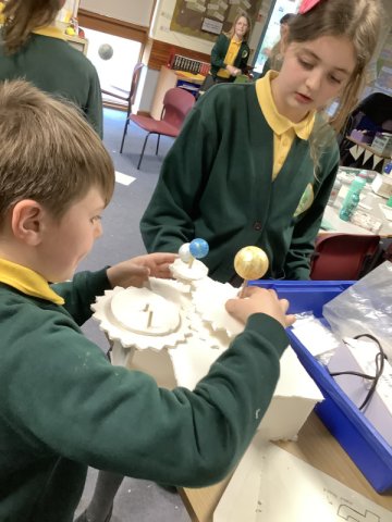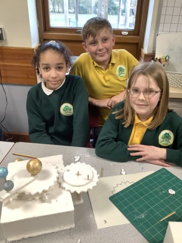 Class 3 have been very busy sketching, designing and making their orreries as part of their work in Design & Technology. This work also links to the work they have been doing in Science on 'The Earth & Beyond'. This was a challenging task, the children found the cogs quite tricky to make so that they worked effectively but got there in the end with the help from their peers. The children were please with their products and proud of the effots that they put in.