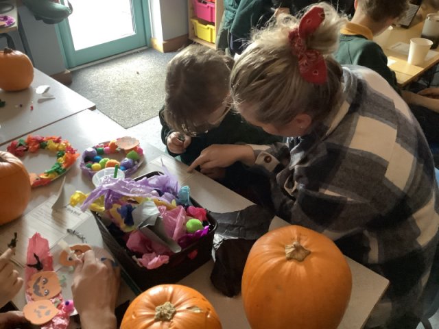 Class 3 had a wonderful time with their families before half term at the Family Halloween craft afternoon. The children and parents took part in a range of craft activities including gingerbread biscuit decoration and pumpkin carving. A portion of the afternoon was spent down in the forest where families could toast a marshmallow and have a hot chocolate by the fire as they carved their pumpkins. Take a look at our photos!