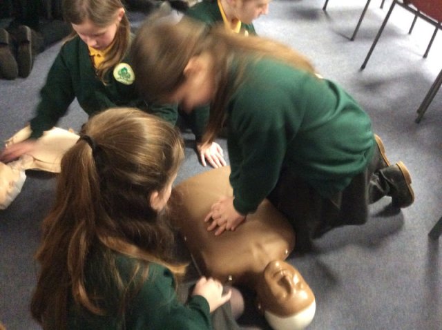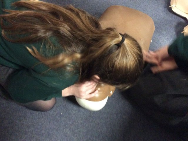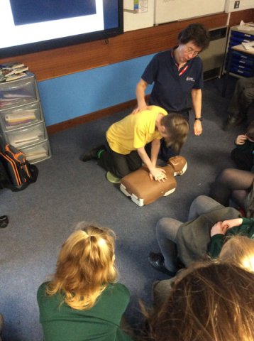 We were extremely lucky to have Tim and his Heartstart training team join us on Friday 25th January to teach us all about CPR. We were taught about the importance of DRSABC (this is the order for checking a casualty) and what to do in the case of finding someone unconscious. The class had a go at getting a patient into the recovery position, how to administer CPR and eben how to use an AED (Automatic Emergency Defibrillator). Â