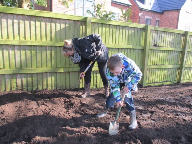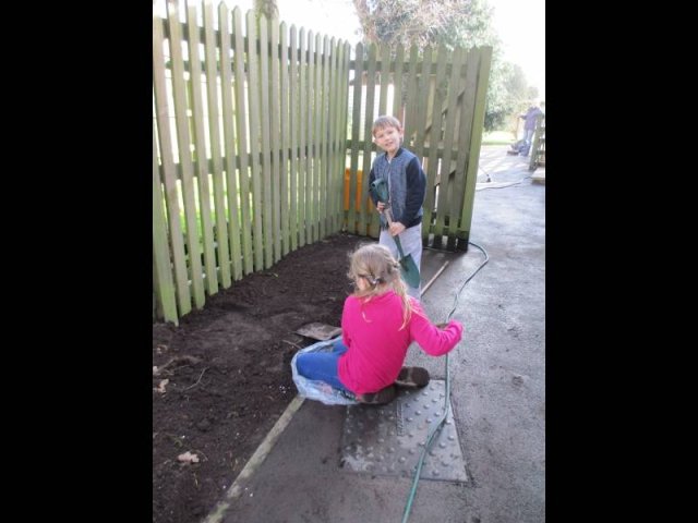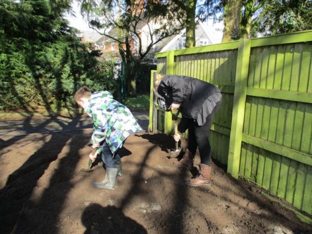 I would like to say a great big Thank you to all those parents, children, family and friends who came to help with our landscaping project during half term. There was a great atmosphere and everyone worked extremely hard to achieve what was on our plan. All we need now is a bit of bark, some more plants, a paved area, a bench and of course some growing time and our project will be completed.