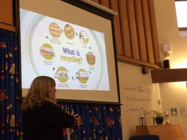 This week we had a special visitor who came to talk to us about recycling. We had lots of questions about where all our waste goes to and what happens to it. Our visitor talked about how we could help at home to recycle our waste and which bins and boxes we should sort them into. We are going to try to help our mums and dads at home to sort the rubbish out.