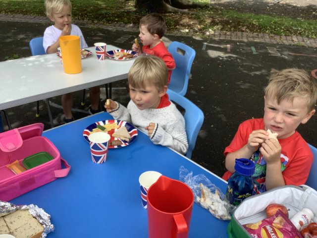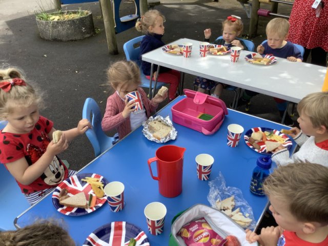 As part of our celebrations for the Queen's Jubilee, we held a Jubilee Afternoon Tea Party. The children (and staff) thoroughly enjoyed the afternoon. Thankfully, the weather stayed nice for us!